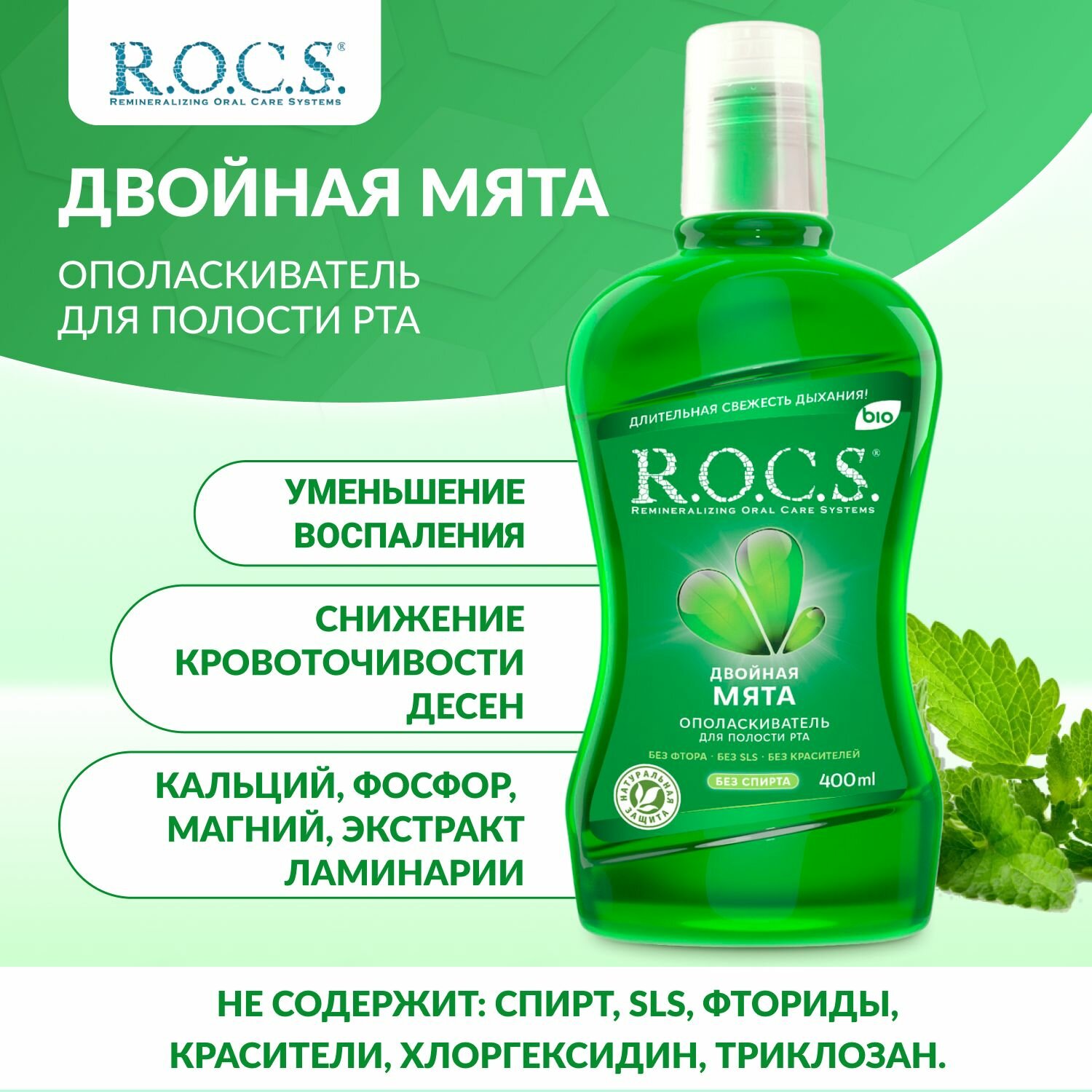 Купить Ополаскиватель R.O.C.S. Двойная мята, 400 мл