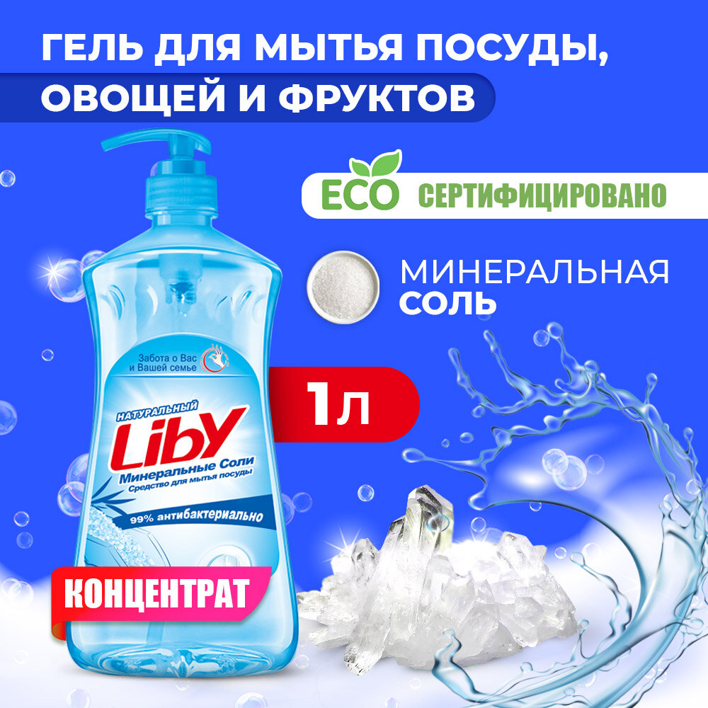 Средство для мытья посуды LIBY Минеральные соли 1,1 л