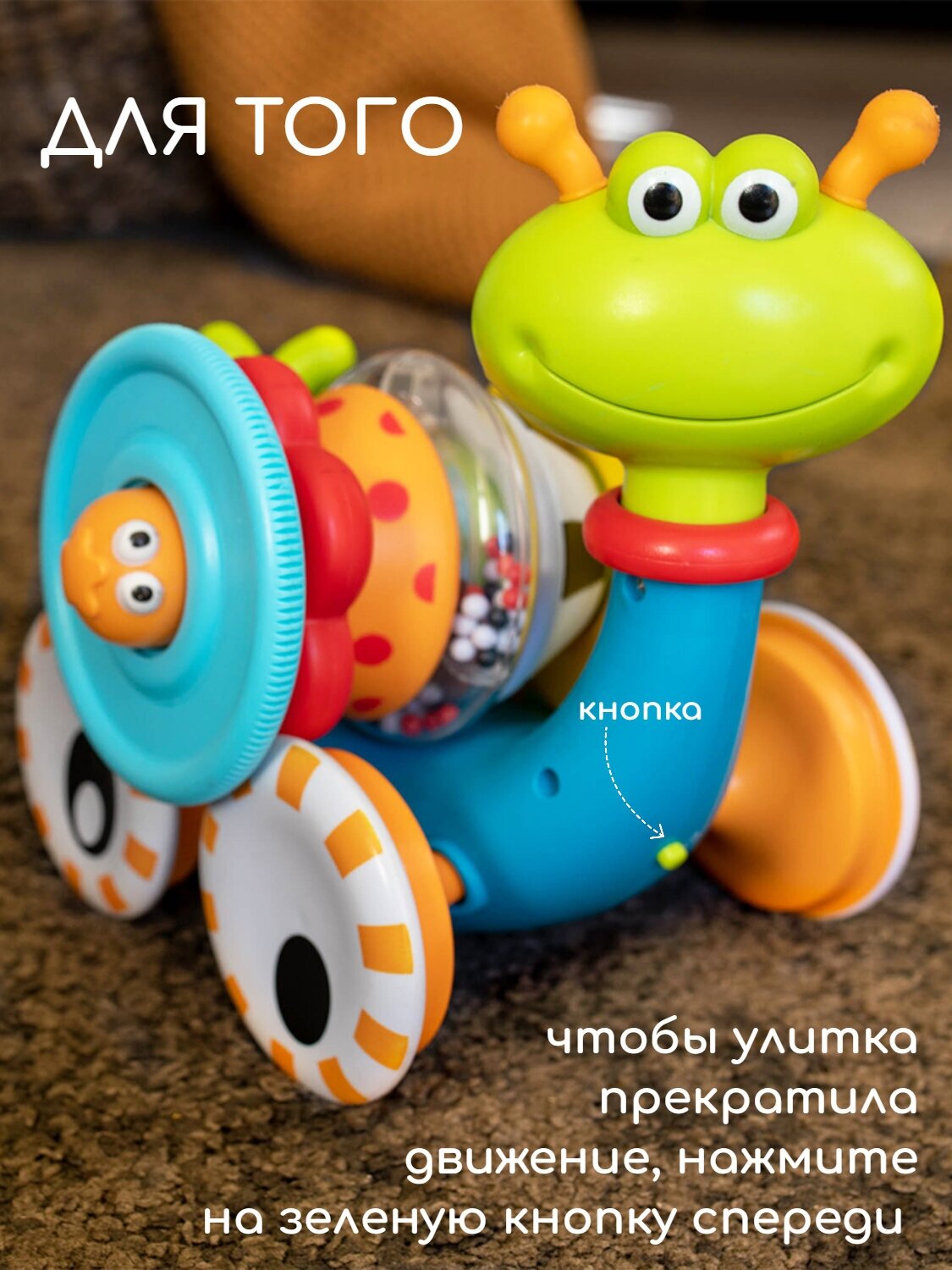 | Отзыв: | Отличная игрушка! Ребёнок играет с года (мог бы и раньше, если бы купили ее раньше). Играет и как пирамидкой, и отдельно улиткой, и всей конструкцией вместе. Включается легко - надо на хвостик нажать, и она едет и поёт песню, вертит головой, а в это время вращается пирамидка на ее спине. Пирамидка раскручивается (родителем, т к голубое кольцо на резьбе) и разбирается, можно собирать ее в любом порядке, все колечки разные, есть кольцо с бусинками, оно гремит как погремушка. Основание пирамидки в виде пищалки, если нажимать на мордочку червячка. Песня улитки одна, но не противная, и не громкая. Мне игрушка очень понравилась. Особенно по цене со скидкой (покупала около 2х тыс) |