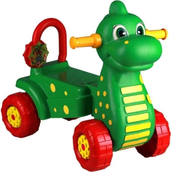 | Плюсы: | Отличная каталка за небольшие деньги. Ребенок 1,5 года с удовольствием играет, залезает и слезает с динозаврика. Но нам каталка еще большая, немного не достаем до пола, поэтому пока катают взрослые. |