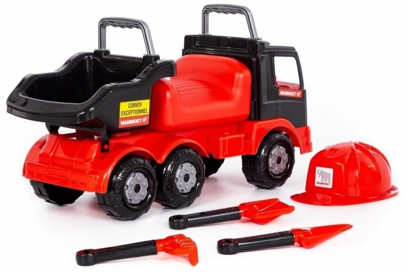 Автомобиль-каталка Полесье MAMMOET, каска, совок №23, грабли №23, лопата №23 (57082)