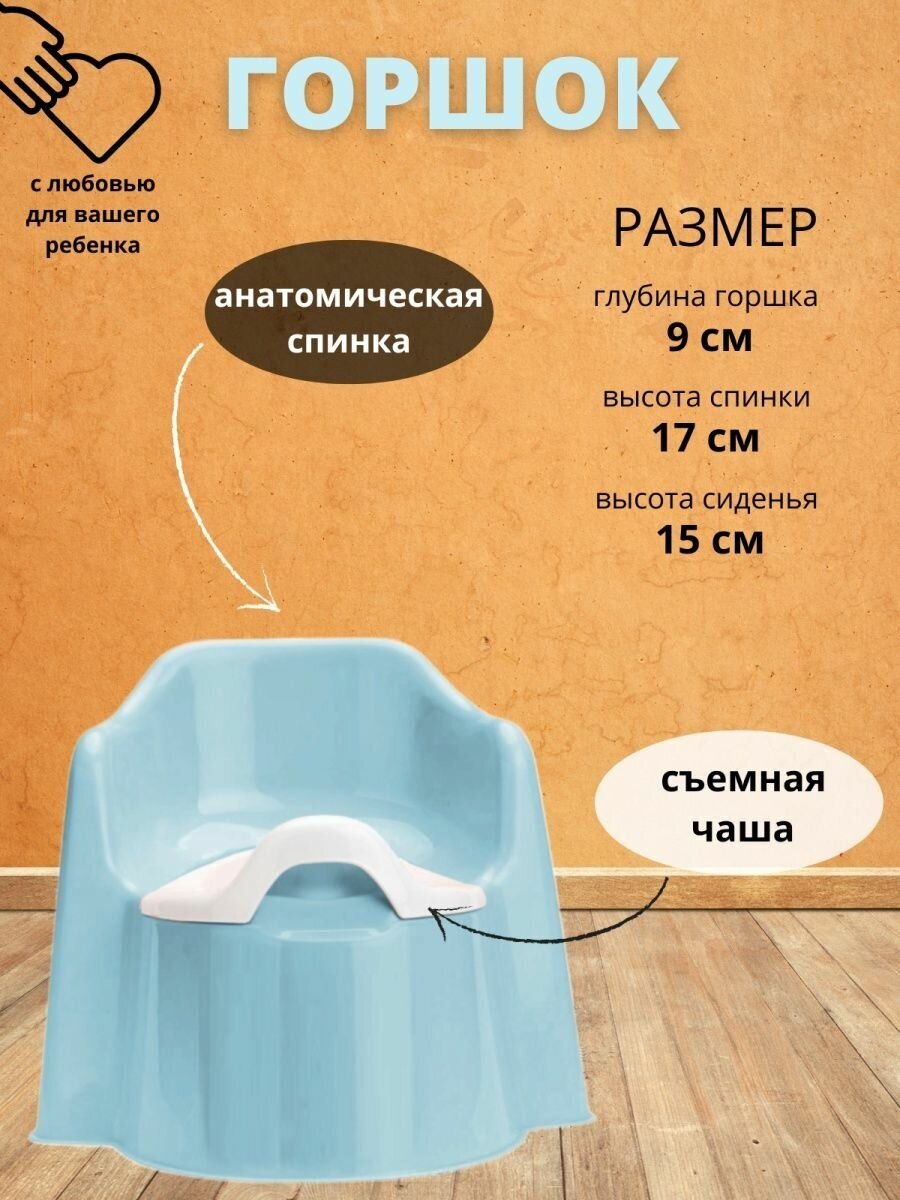 | Плюсы: | Очень удобный горшок и для девочки и для мальчика. Спинка даёт возможность облокотиться и не сутулиться ребёнку. |