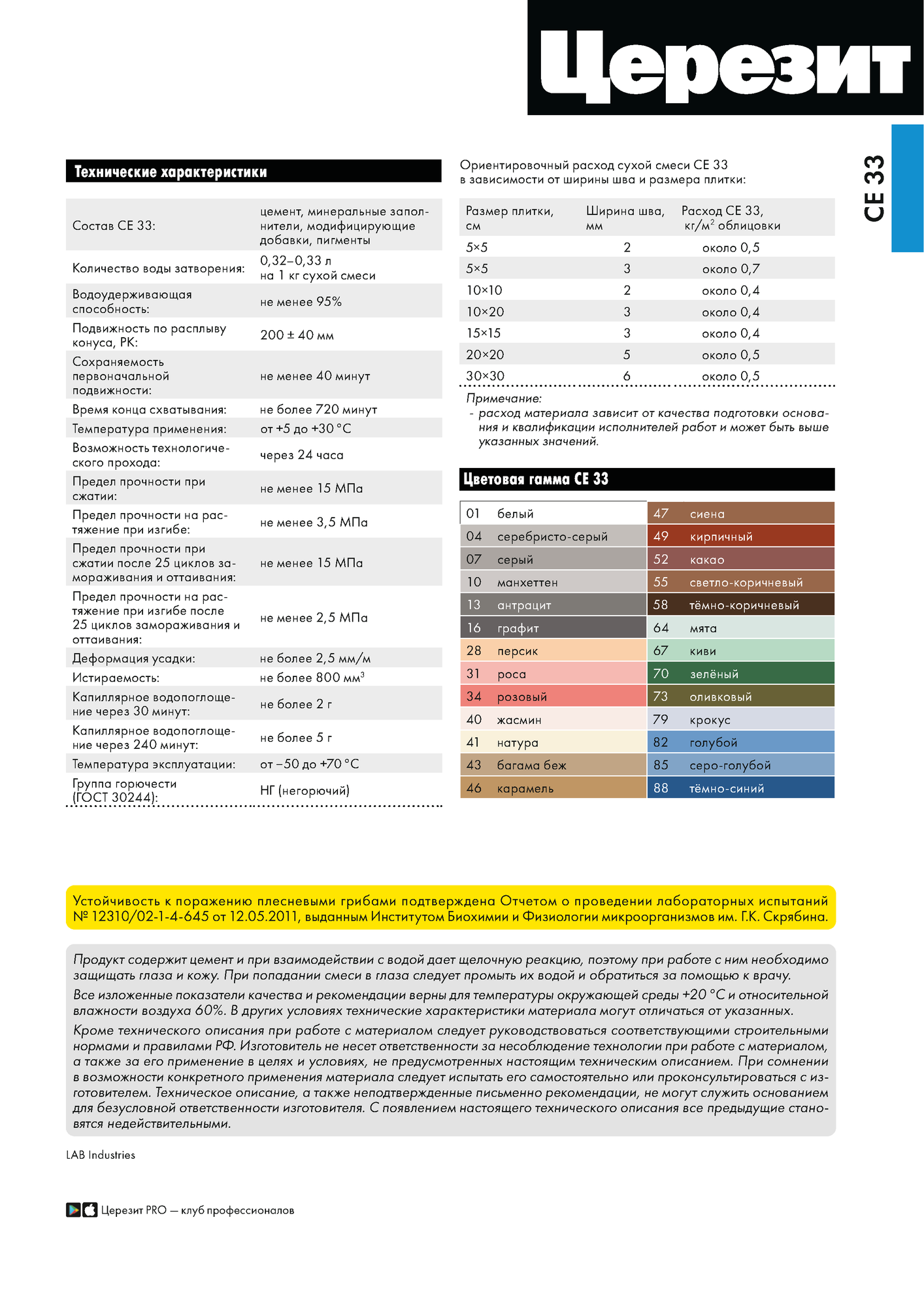Затирка цементная водоотталкивающая, для швов до 10 мм Церезит CE 40 № 73, цвет оливковый (2 кг)