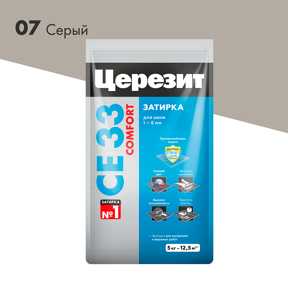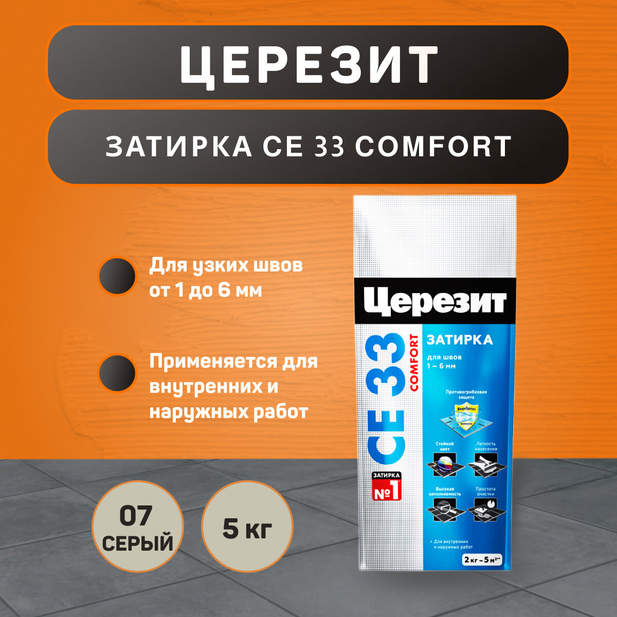Купить Затирка Ceresit CE 33 Comfort №07 серая 5 кг