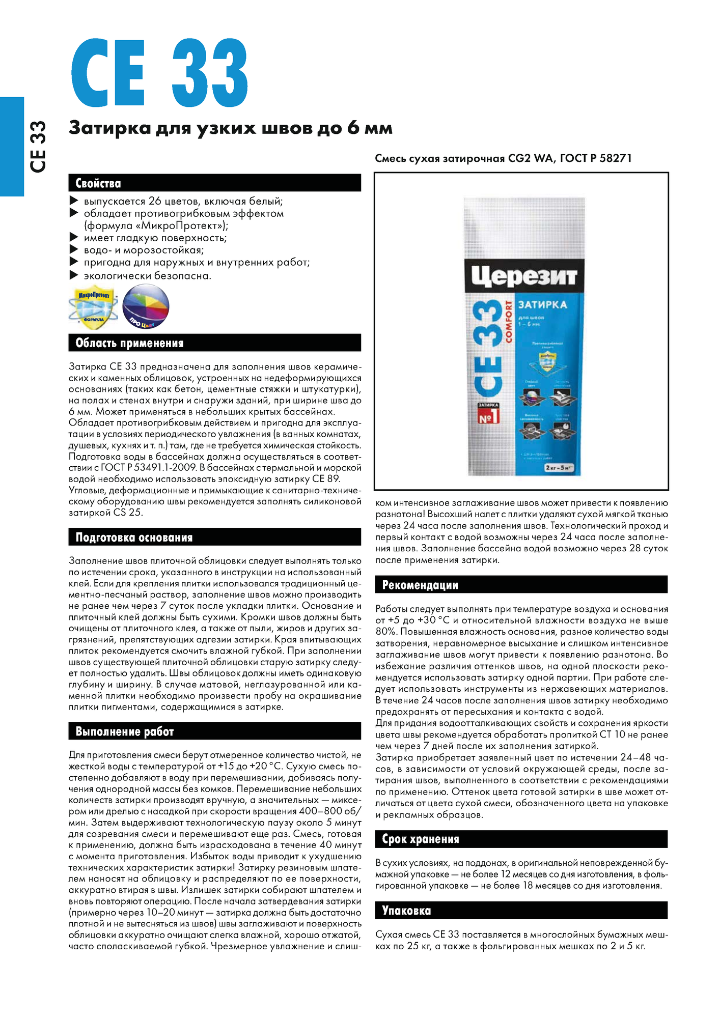 Церезит СЕ 33 затирка противогрибковая №41 натура (2кг) / CERESIT CE-33 Comfort затирка цементная для швов противогрибковая №41 натура (2кг)