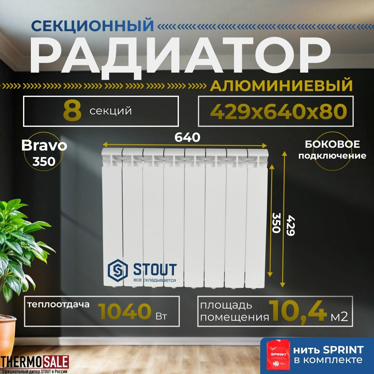 STOUT Bravo 350 8 секций радиатор алюминиевый боковое подключение
