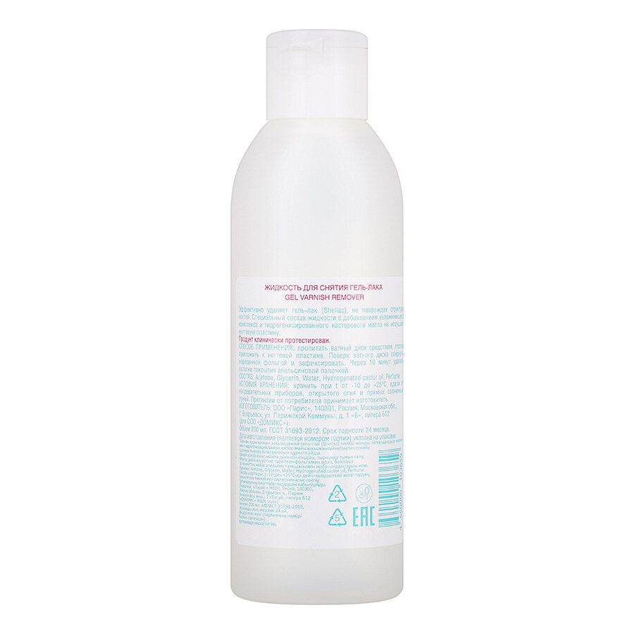 Увлажняющий комплекс Гидрогенизированное касторовое масло не сушит кожу Хорошее средство. Пахнет не сильно. Снимает гель-лак через 10-15 минут. |