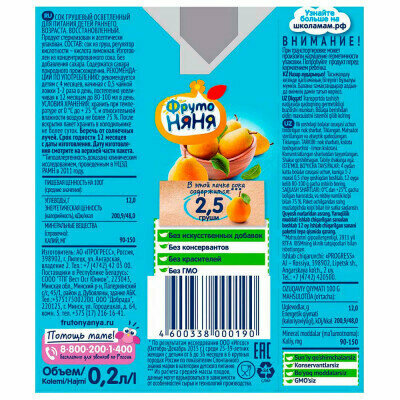 Сок осветленный ФрутоНяня из груш, c 4 месяцев, 0.2 л интересное: