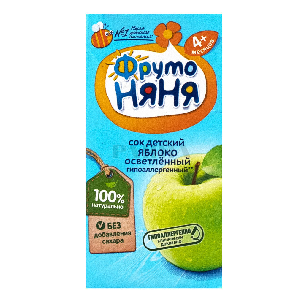 Сок ФрутоНяня Яблоко осветленный, c 4 месяцев, 0.2 л интересное:
