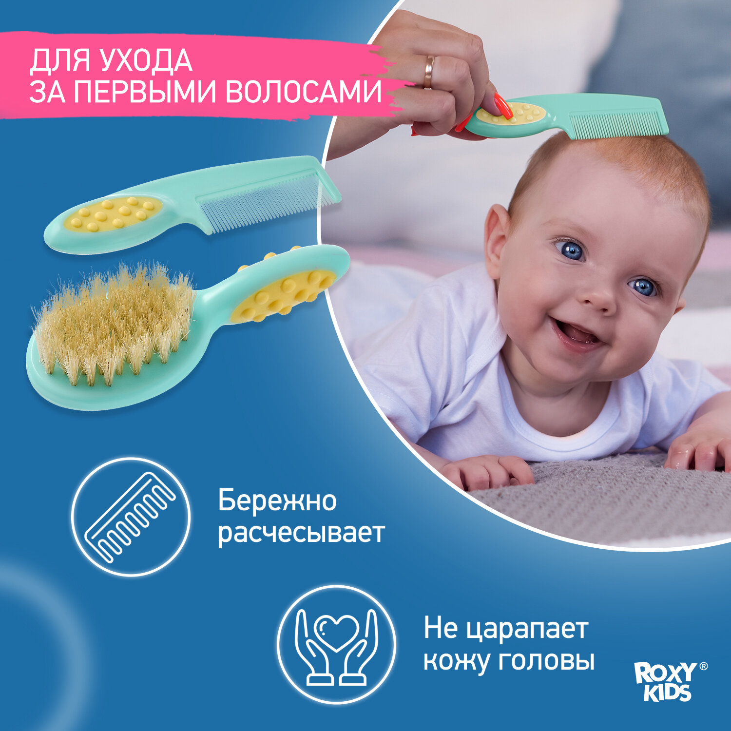 Детские расчёски, щётки Roxy-kids Детская щеточка с расческой, ворс из натуральной щетины