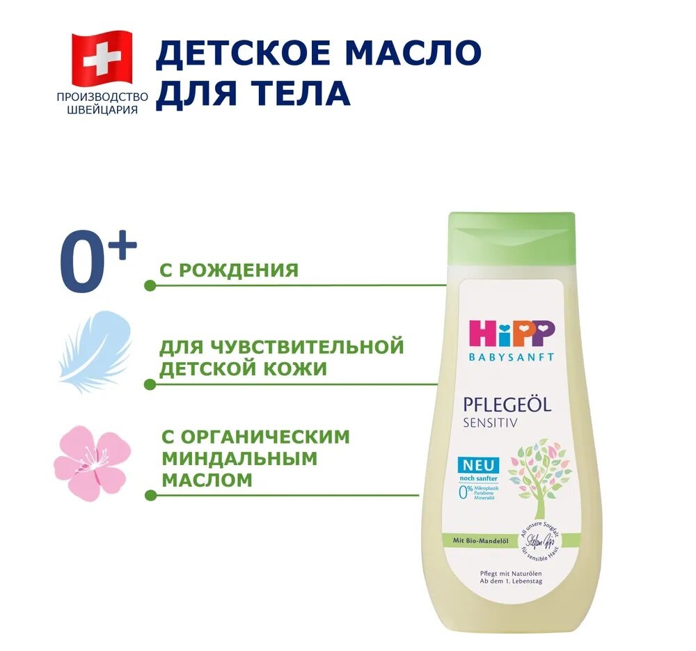 HiPP Детское масло Babysanft для чувствительной кожи, 200 мл интересное: