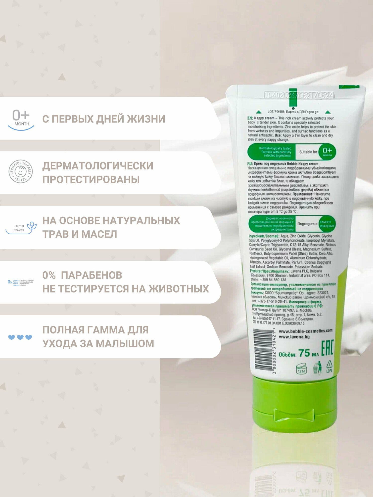 Bebble Крем под подгузник Nappy cream, 75 мл, Bebble интересное: