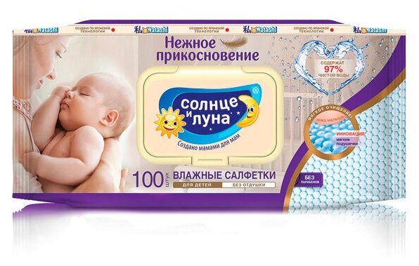 Детские влажные салфетки солнце И луна нежное прикосновение с крышкой 0+, 100 шт.
