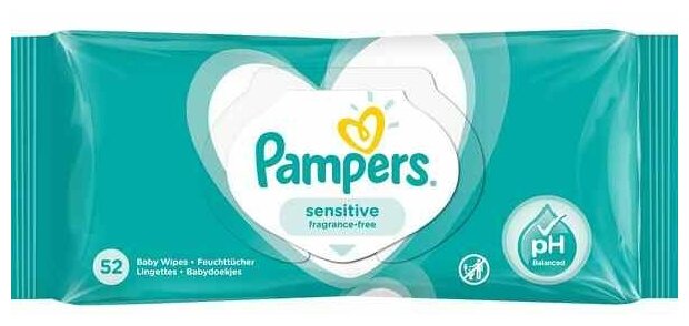 Купить Детские влажные салфетки Pampers Sensitive 52 шт.