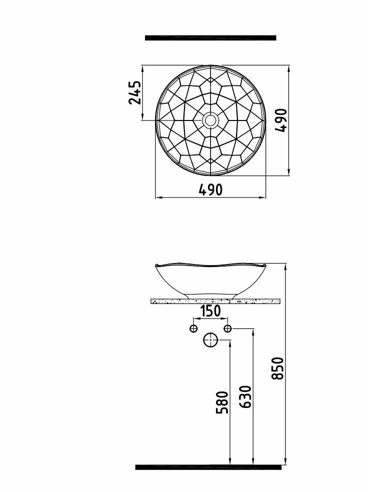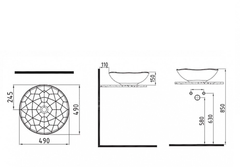 Раковина накладная Bien PENT PNLG04901FD0W3000 D49