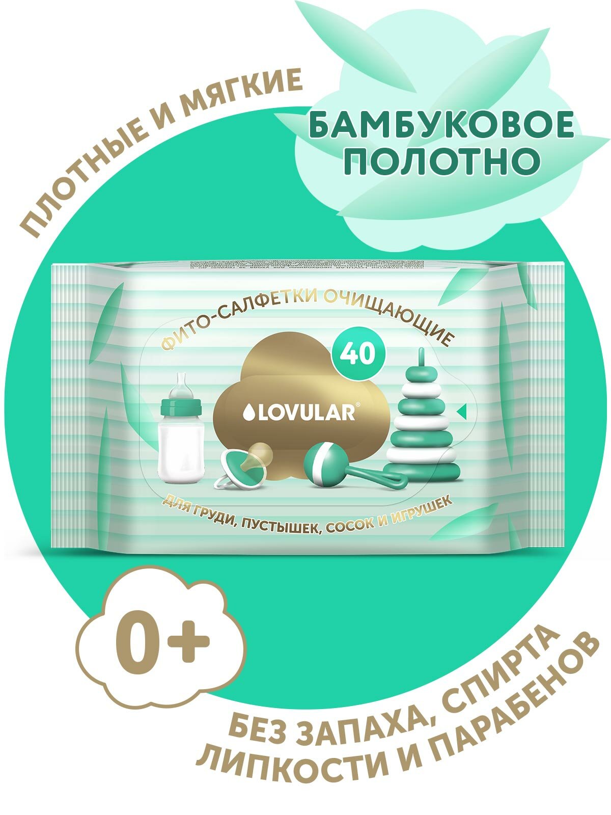 Влажные фито-салфетки LOVULAR 40 шт/уп для груди, сосок, пустышек интересное: