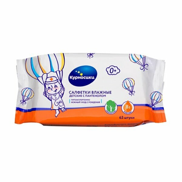 Салфетки влажные Курносики для малышей с Д-пантенолом, от 0 мес, 63 шт (40028)