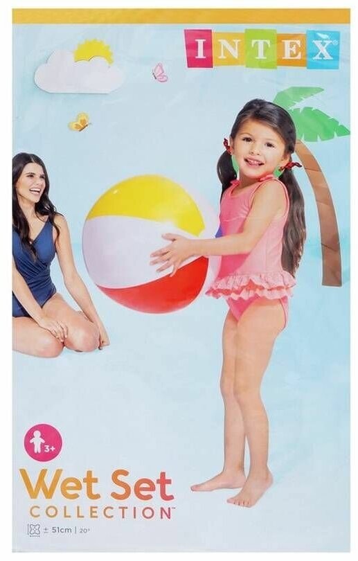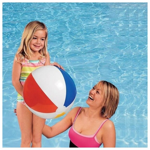 Надувной пляжный мяч INTEX разноцветный для игр в воде и на суше, диаметр 51 см
