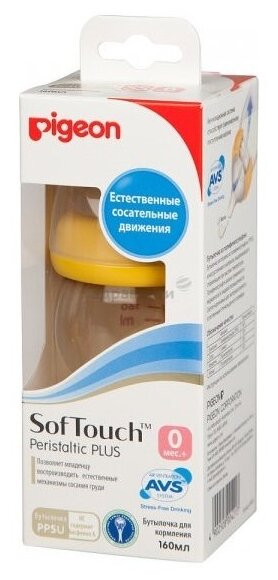 Бутылочка для кормления Pigeon SofTouch Peristaltic PLUS, 0+ мес. 160мл PPSU