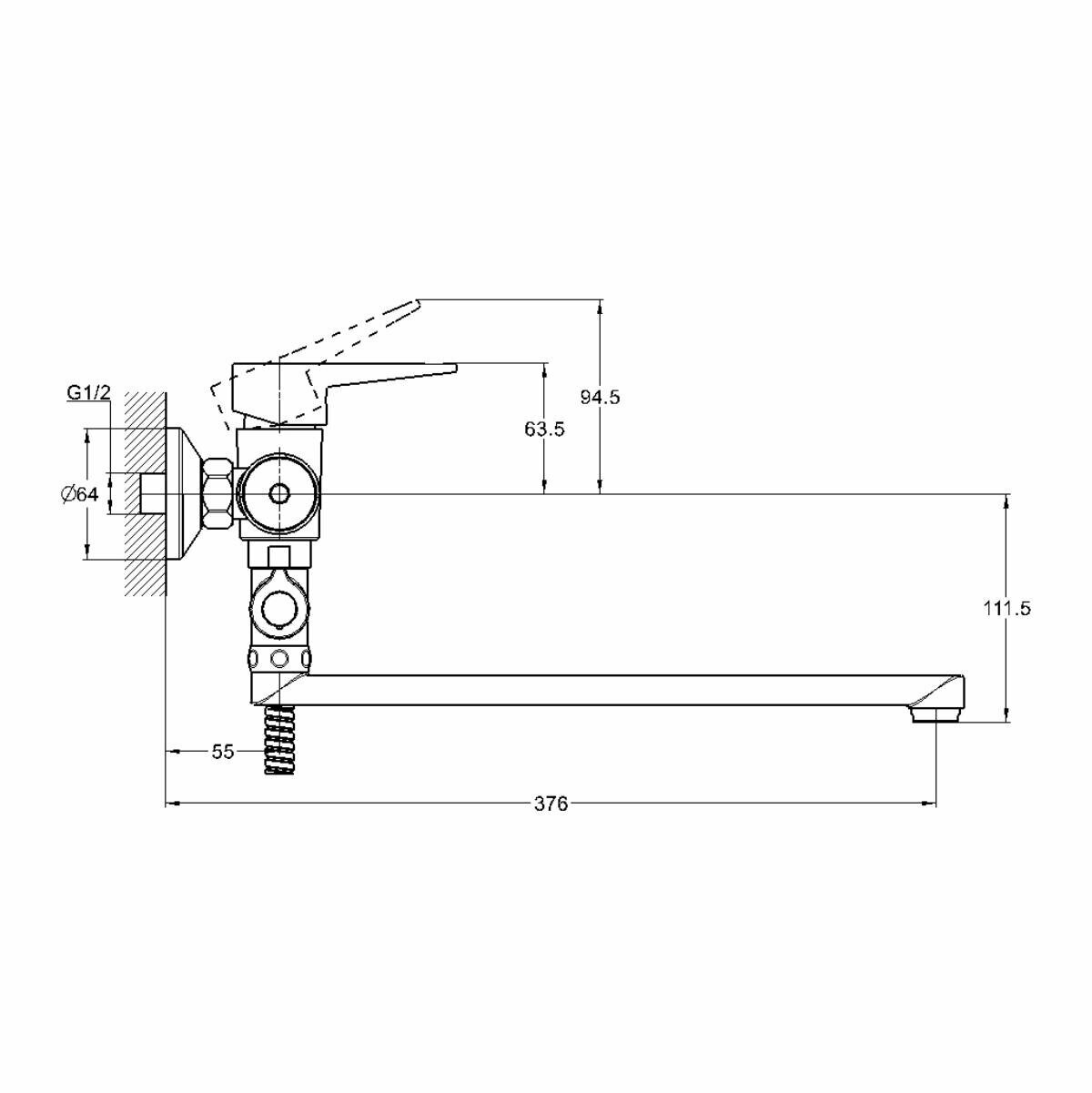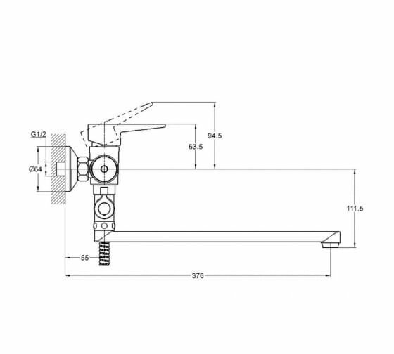 см-ль для ванны с плоским пов. изливом, ?35, выносной дивертор NUD6-A045