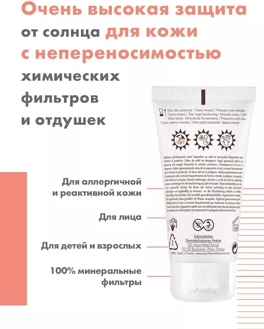 Avene солнцезащитное молочко с минеральным экраном SPF50+, 100 мл