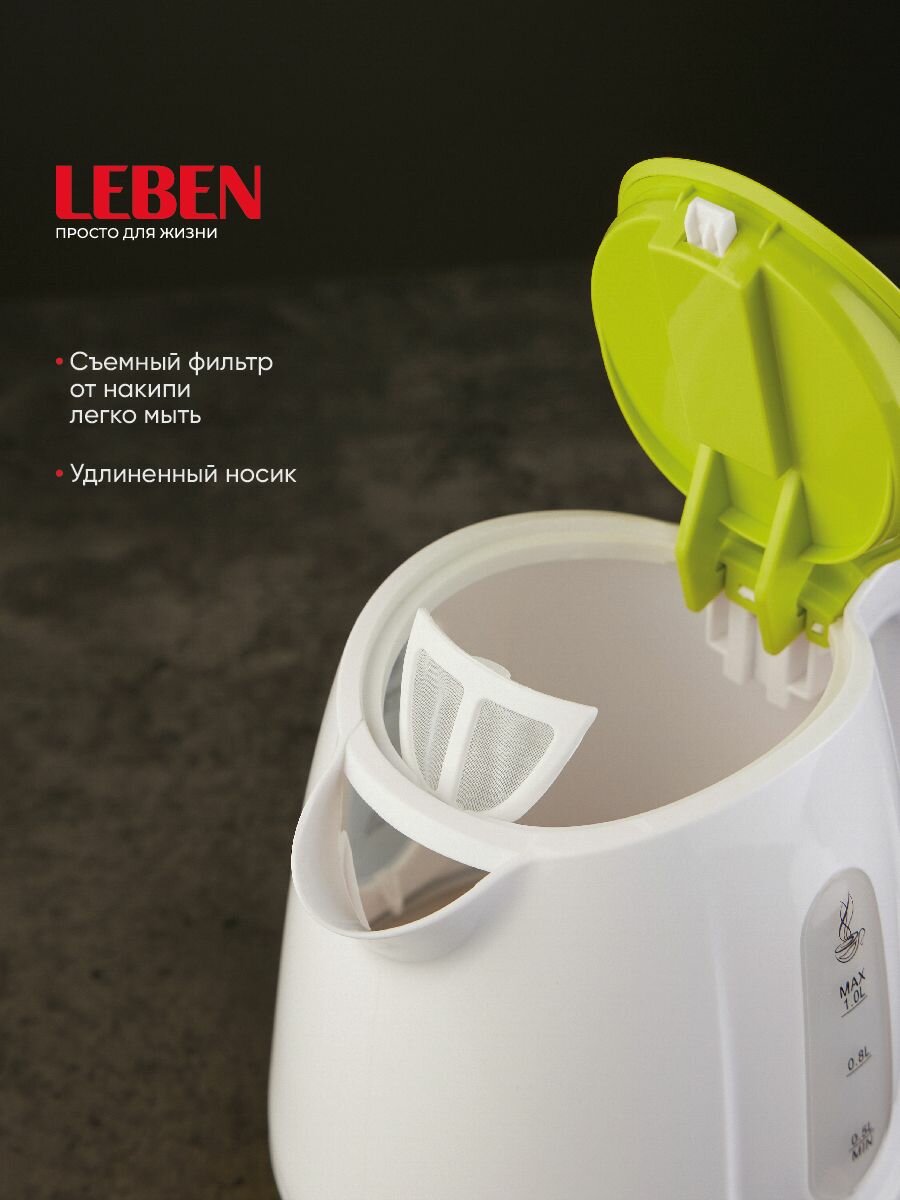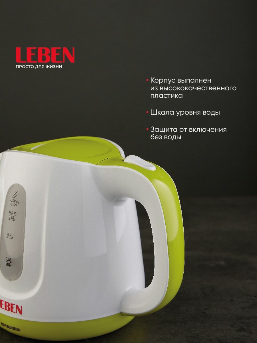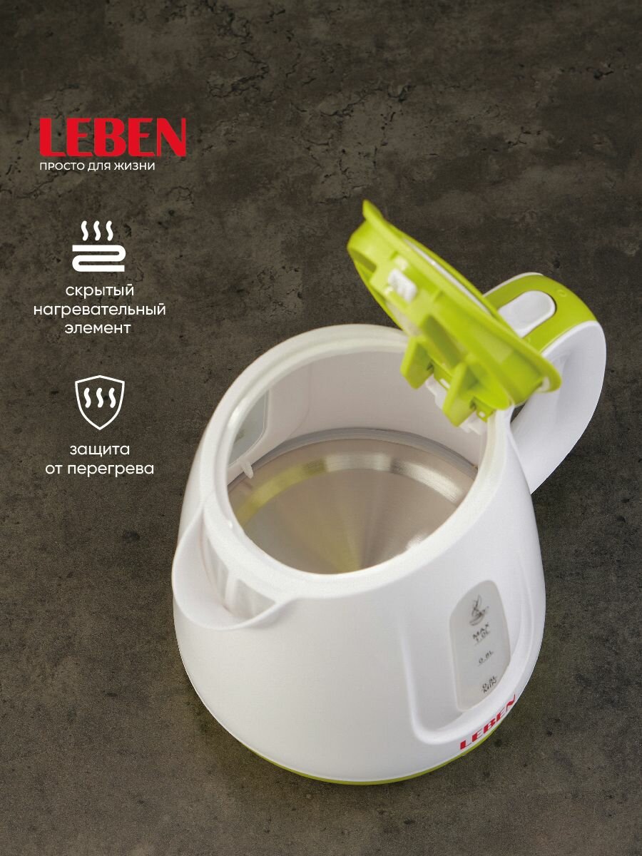 Чайник электрический LEBEN 291-012 1л бело-салатовый