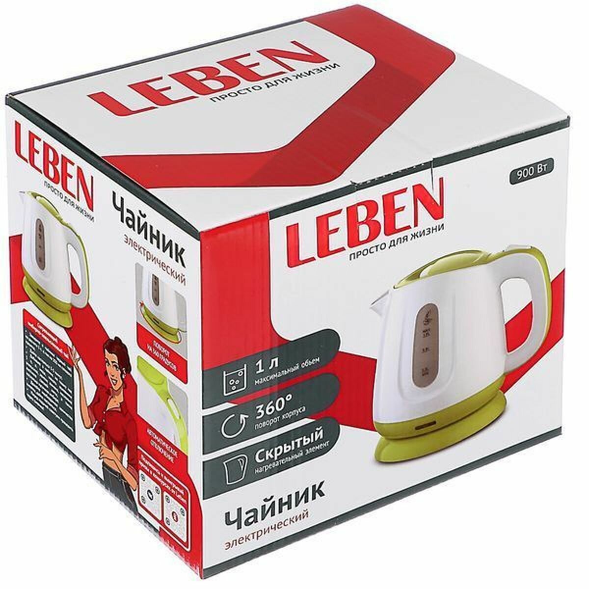 Купить LEBEN Чайник электрический 1,0л, 900Вт, скрытый нагр.элемент, пластик, подсветка, 1