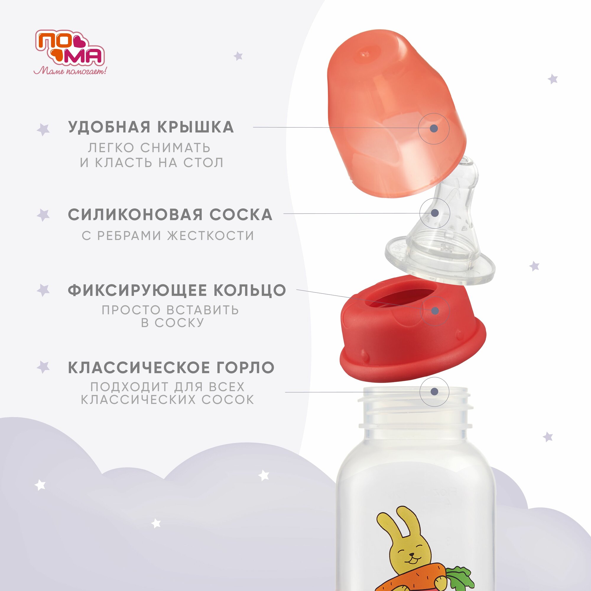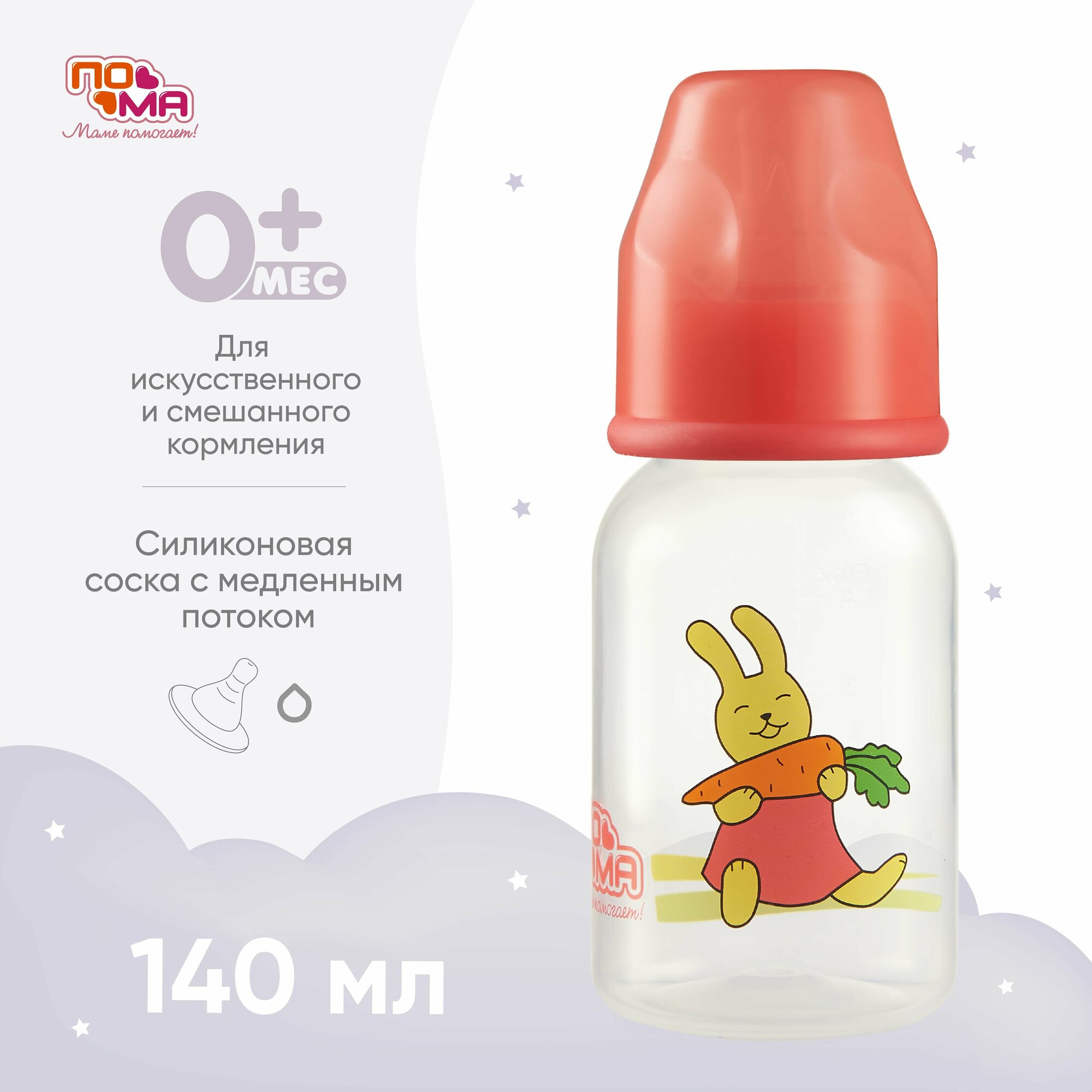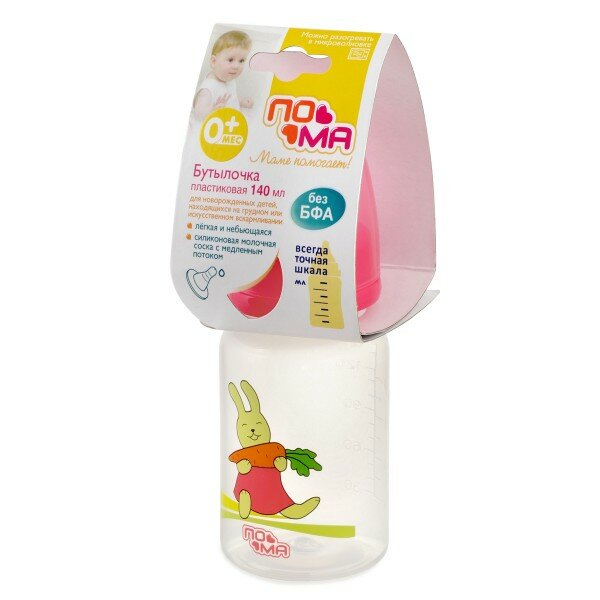 Купить Бутылочка пома 140 мл с силиконовой соской с медленным потоком, 0+