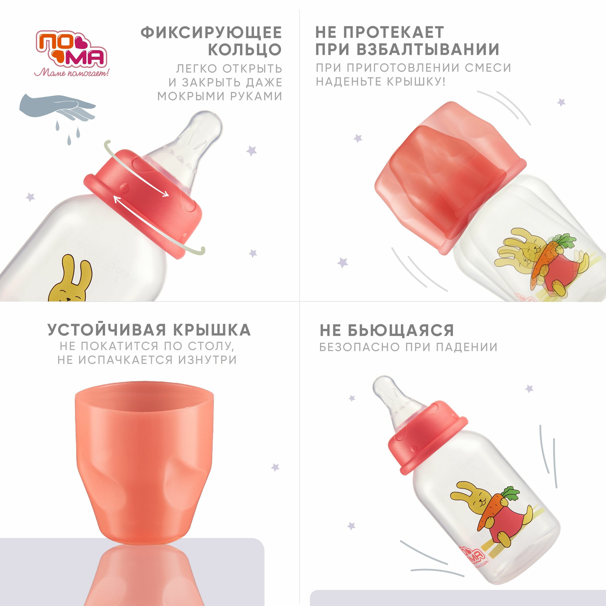 | Плюсы: | прочный пластик, удобная соска |
