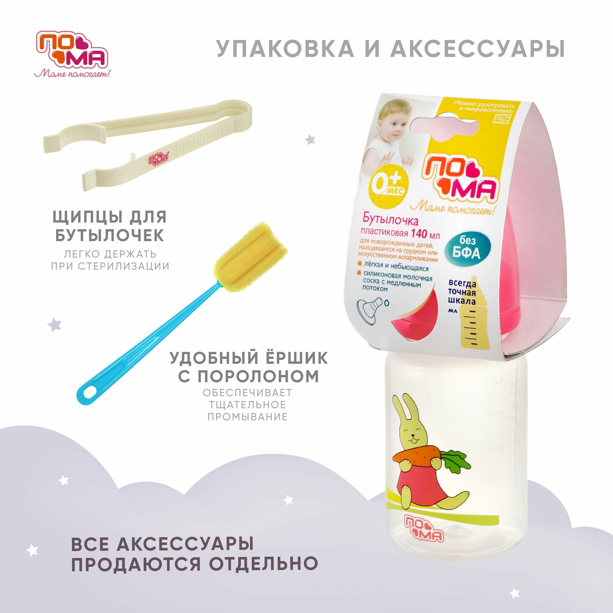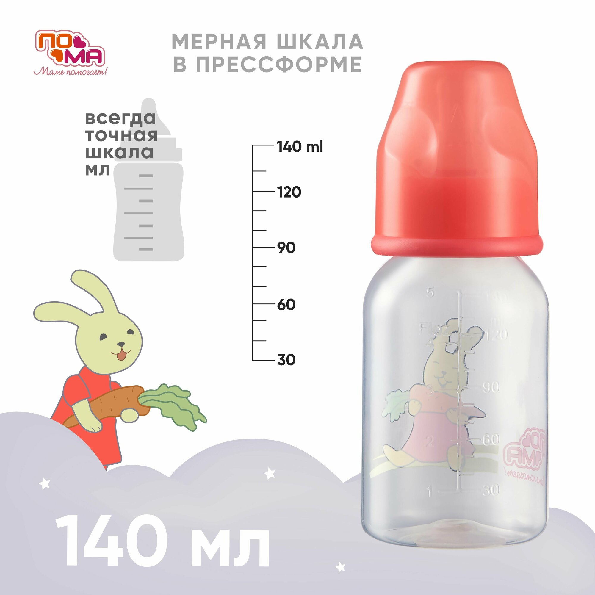Бутылочка пома 140 мл с силиконовой соской с медленным потоком, 0+ интересное: