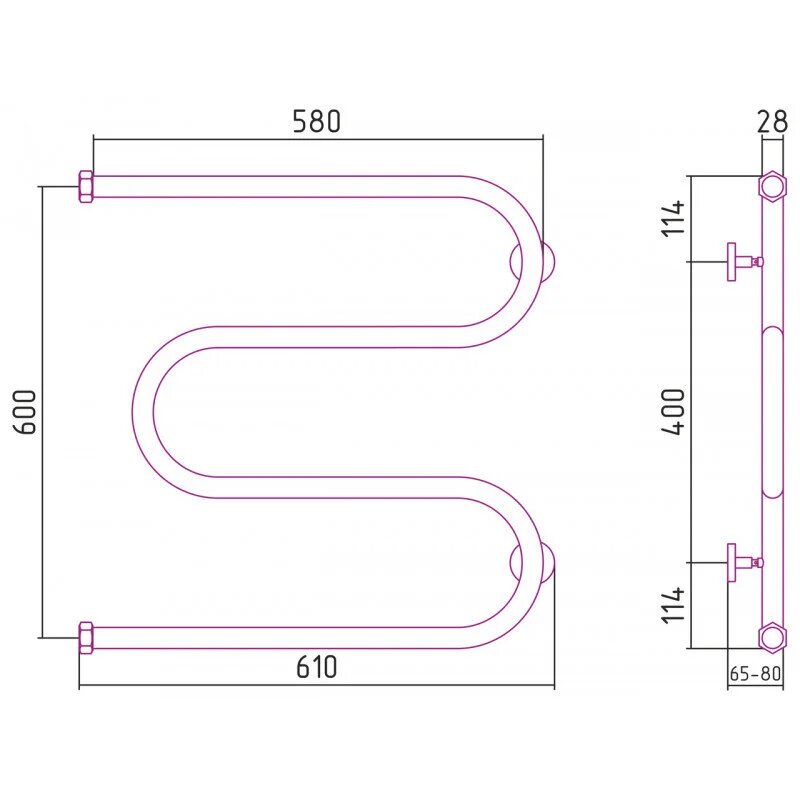 Сунержа Водяной полотенцесушитель Сунержа М-образный 600х600