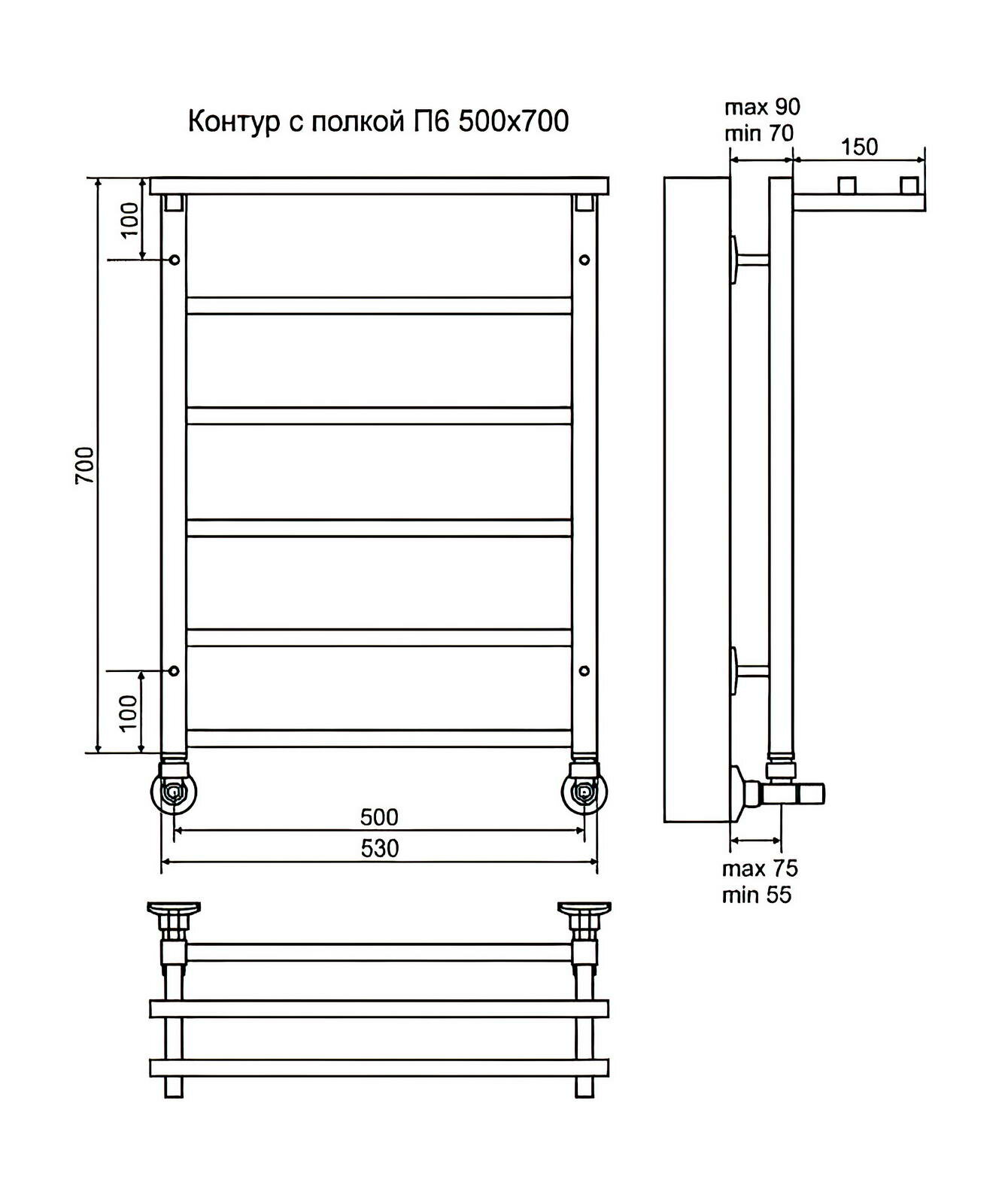 Водяной полотенцесушитель TERMINUS Контур П6 530x700 хром