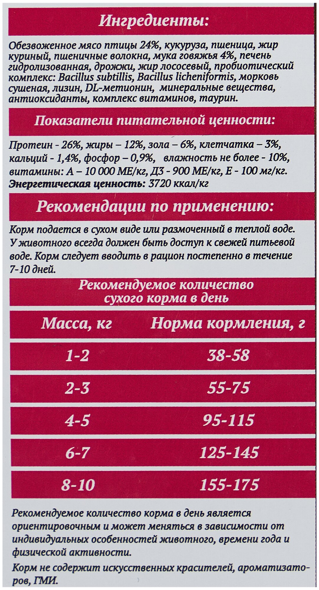 | Плюсы: | Хороший не дорогой российский корм, в составе имеется пробиотический комплекс и ферменты |