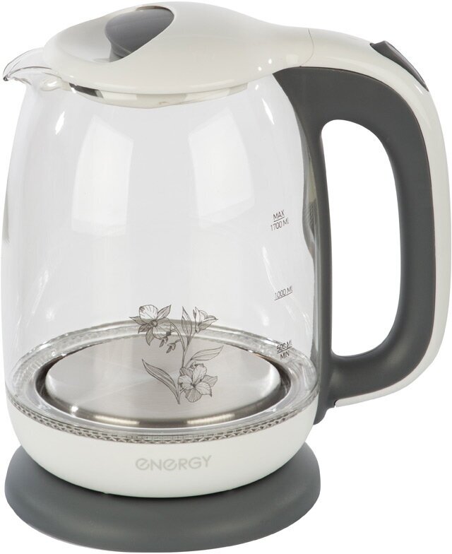 Чайник стеклянный 1,7л Energy, арт. E-281, бело-серый, 2200Вт