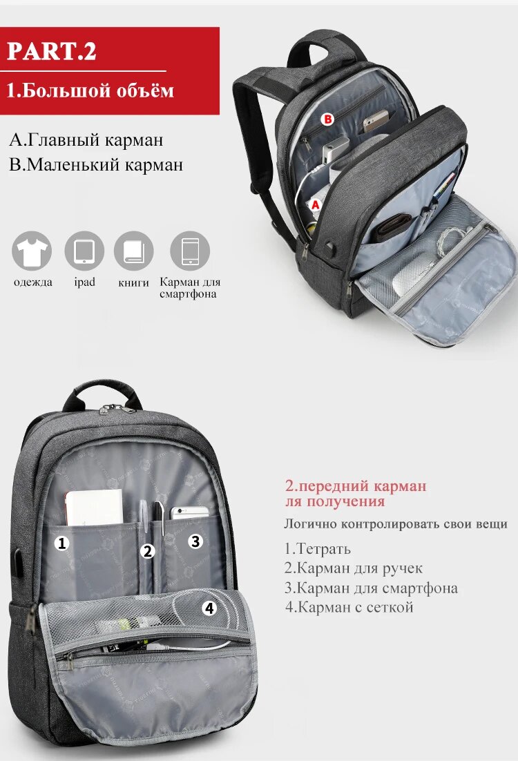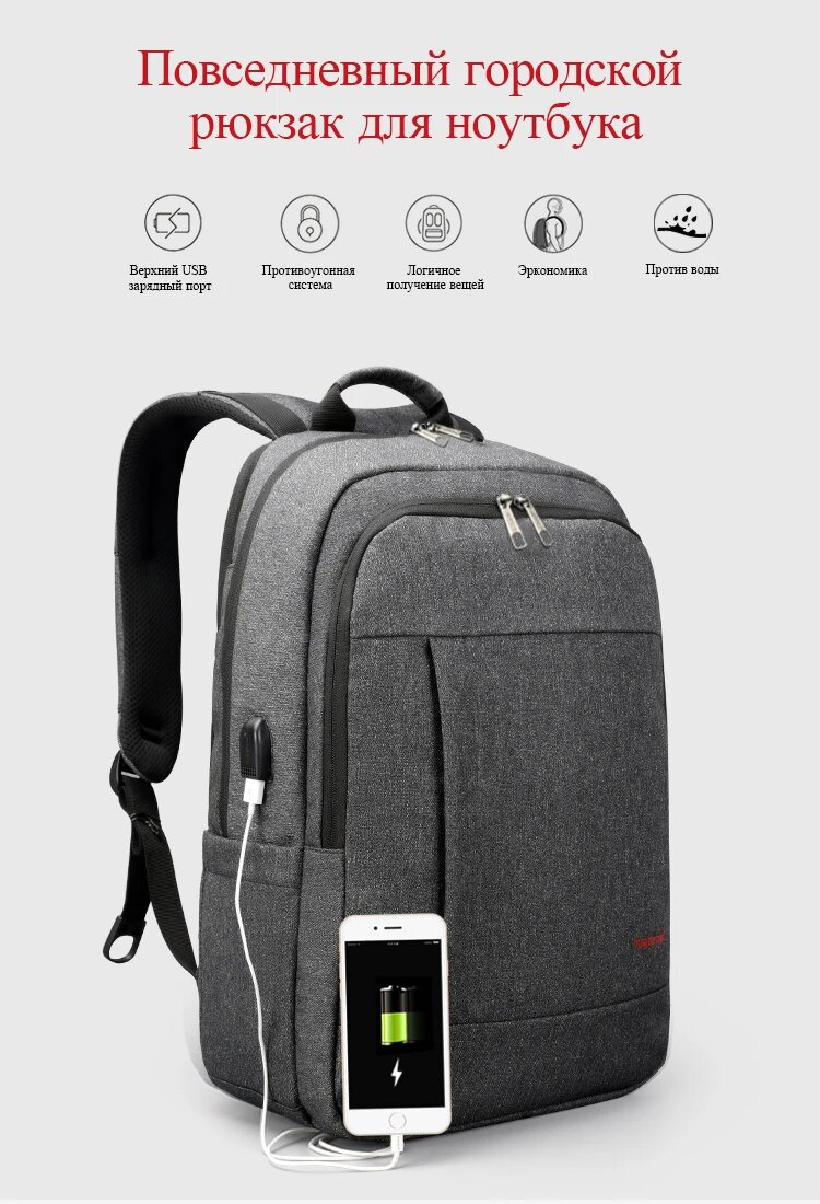 Рюкзак Tigernu T-B3142U, темно-серый, 15.6" интересное: