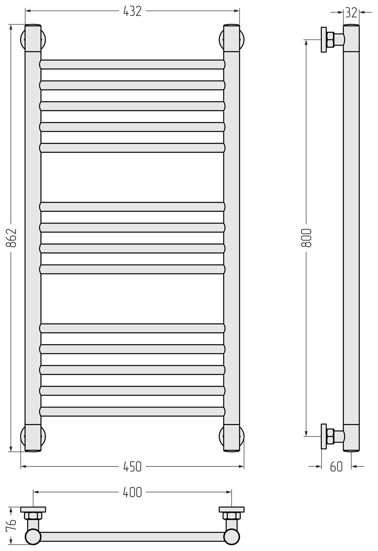 Водяной полотенцесушитель Сунержа Богема+ прямая 800x400 без покрытия