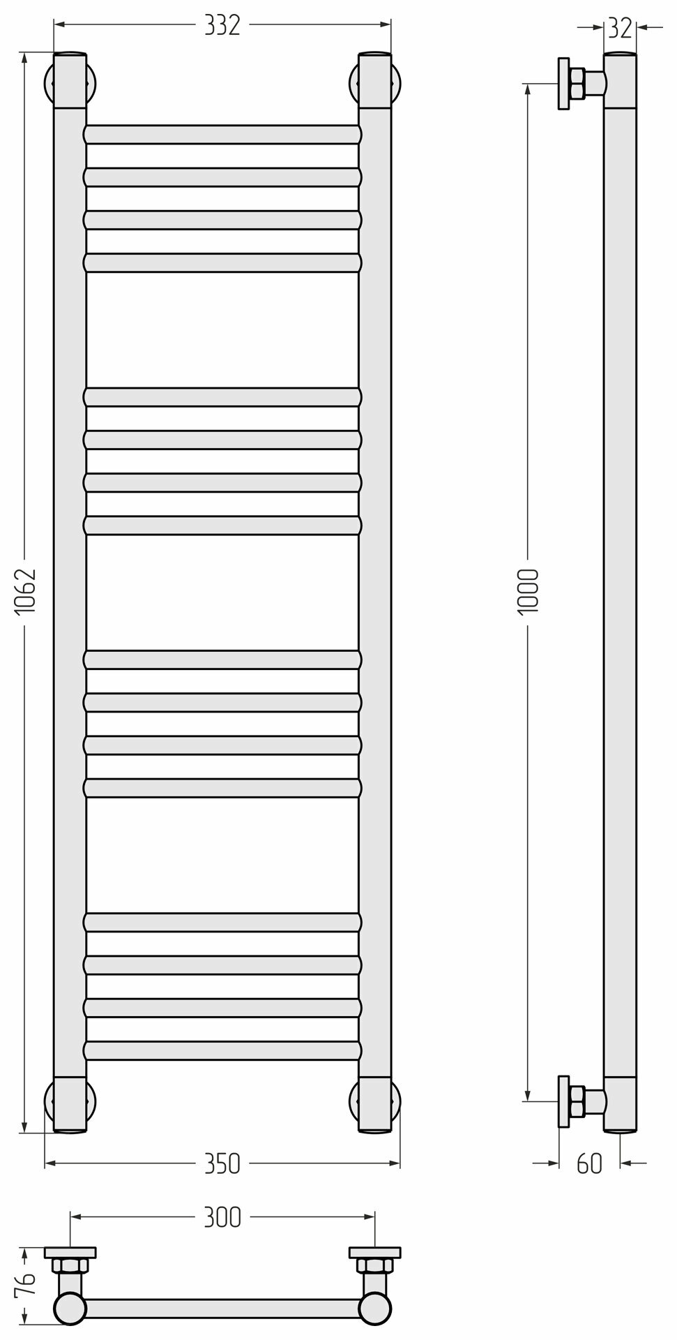 Полотенцесушитель водяной Сунержа 00-0220-1030 Богема+ Полотенцесушитель водяной прямая 1000х300 мм, без покрытия