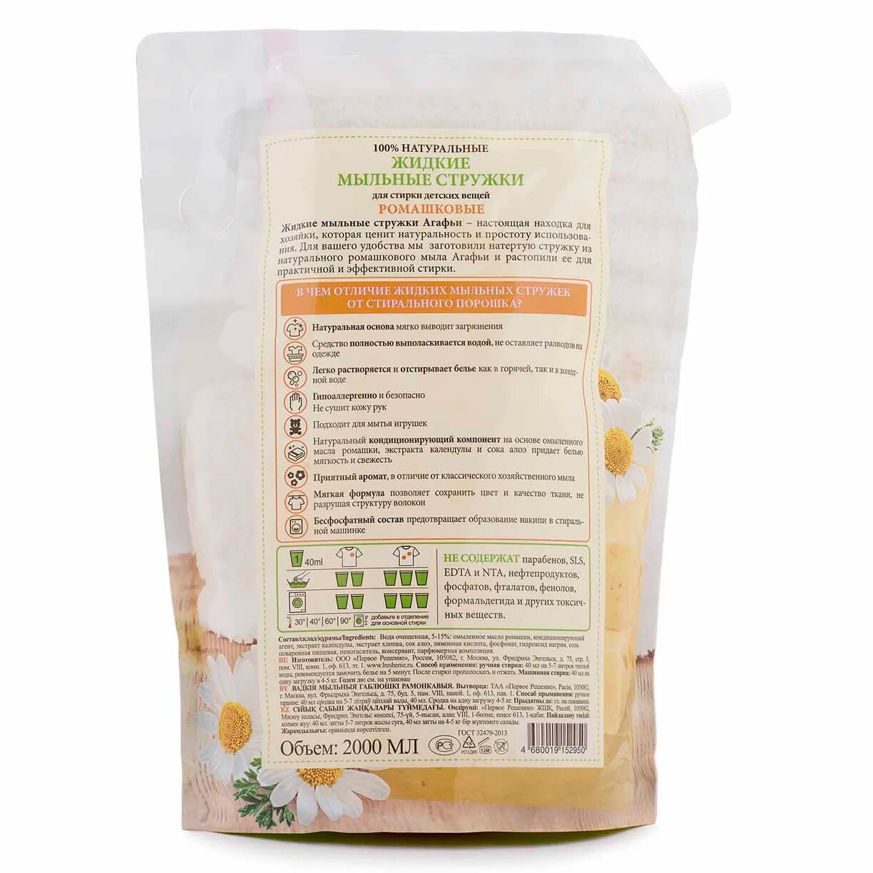Купить Мыло Рецепты бабушки Агафьи Стружки жидкие мыльные 100% натуральные "Ромашковые" для стирки детских вещей, 2000 мл 4680019152950