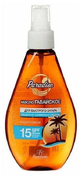 FLORESAN Масло для быстрого загара Гавайское водостойкое SPF15, Paradise, 160 мл, FLORESAN