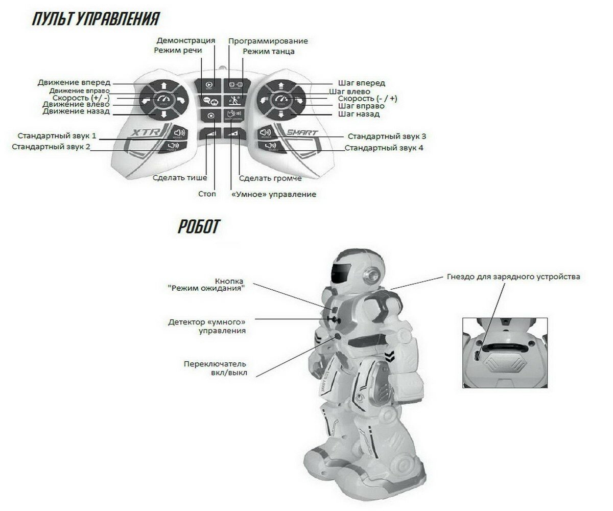 | Плюсы: | Это тот случай, когда реальность превосходит ожидания. Корпус не хлипкий, нет ощущения, что что то может отвалиться или сломаться. Большой плюс это то, что в самом роботе стоит аккумулятор, и робот заряжается, через мини usb, о батарейках можно не думать. На батарейках сам пульт управления, но их наверное хватит на долго. Робот либо шагает (ноги не сгибает), либо катится, смотря какой режим выбрать. Передвигается не особо шустро, я бы даже сказала, что очень медленно. Положение рук можно менять , перемещать вверх вниз и сгибать в локте, с пульта ими управлять нельзя. Есть супер функция -запись голоса и воспроизведение. Робот танцует, разговаривает на своём электронном языке, можно включить сирену , можно регулировать громкость сигналов, а можно и вовсе выключить всякую озвучку. так же можно выключить мигание лампочек. |