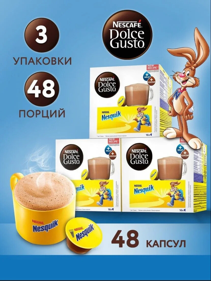 Какао в капсулах Nescafe Dolce Gusto Nesquik, 48 капсул - 3 упаковки по 16 кап.