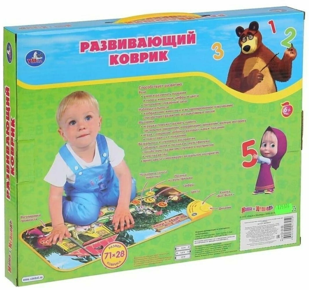 Развивающий коврик Маша и Медведь Домашние животные,71*28 см. 10 обучающих программ интересное: