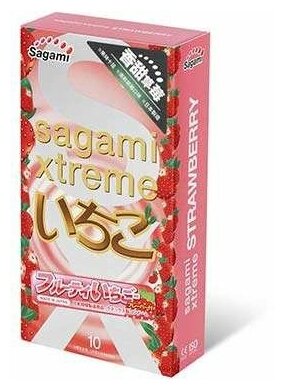 Презервативы с ароматом земляники Sagami Xtreme Strawberry - 10 шт.