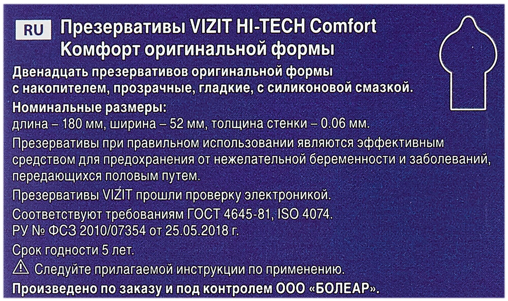 Презервативы VIZIT HI-TECH comfort оригинальной формы, 12 шт