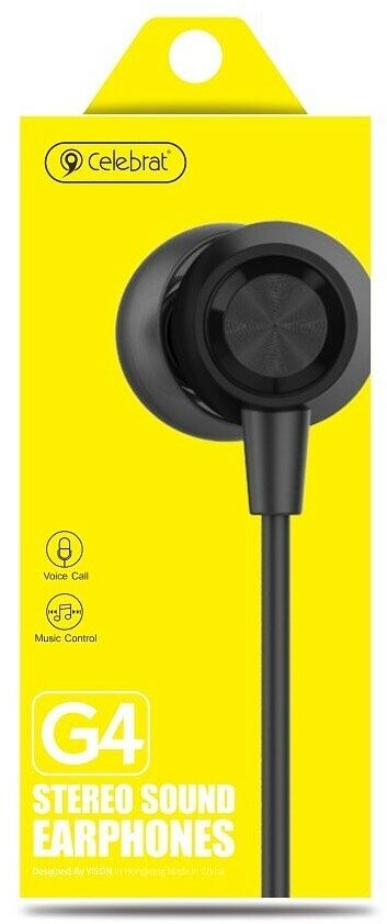 Наушники проводные с микрофоном Celebrat G4, MiniJack 3.5мм, 1.2 метра, черные