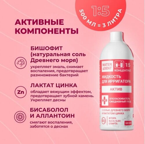 Жидкость для ирригатора+ополаскиватель WATERDENT / Eжедневный уход / Укрепление дёсен / актив / 500 мл
