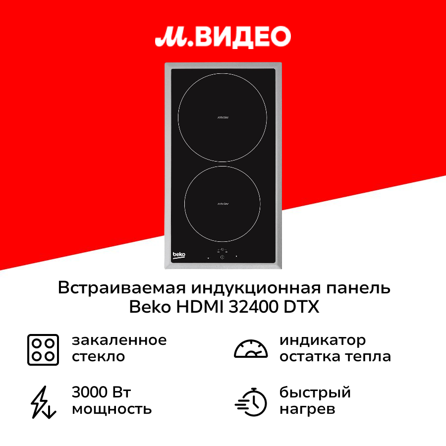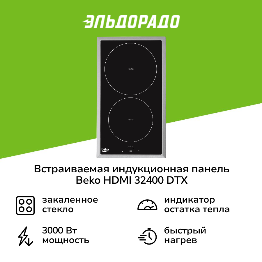 Индукционная варочная панель Beko HDMI 32400 DTX, цвет панели черный, цвет рамки серебристый