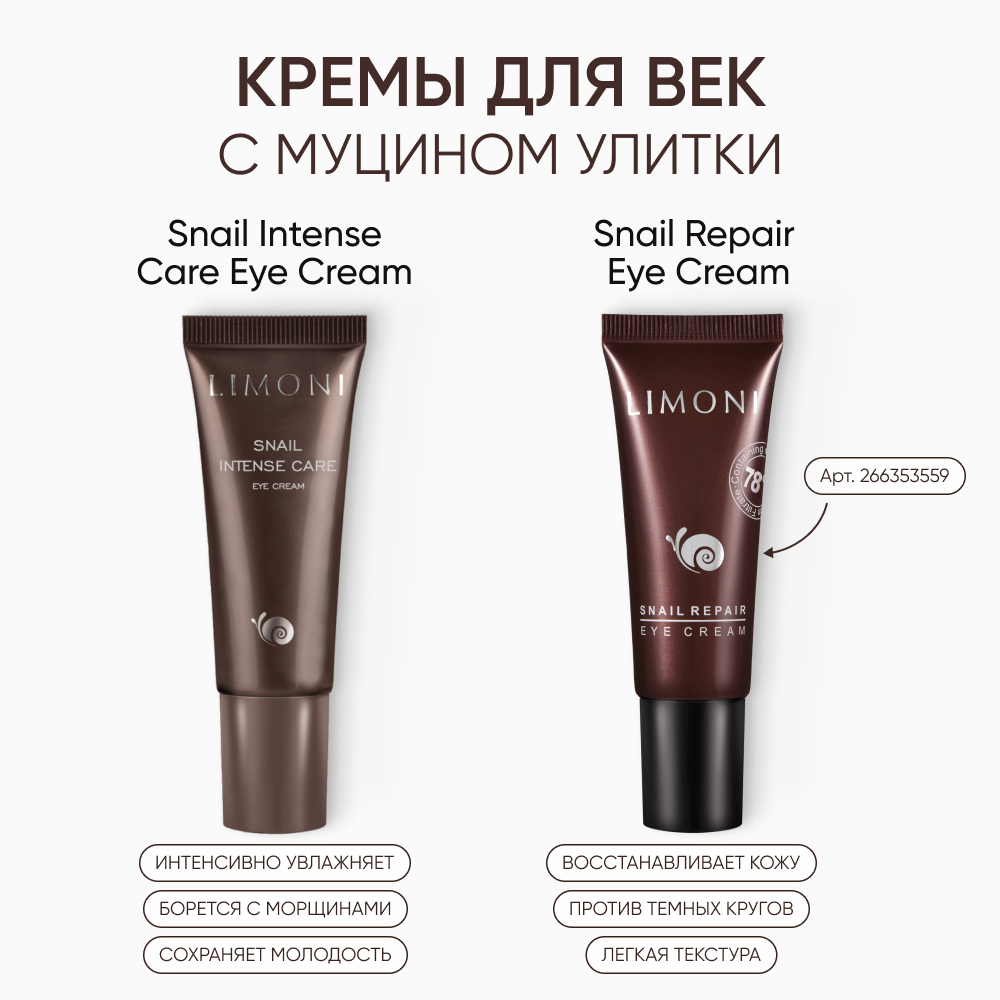 LIMONI Крем для век Snail Intense Care Eye Cream интенсивный с экстрактом секреции улитки, 25 мл