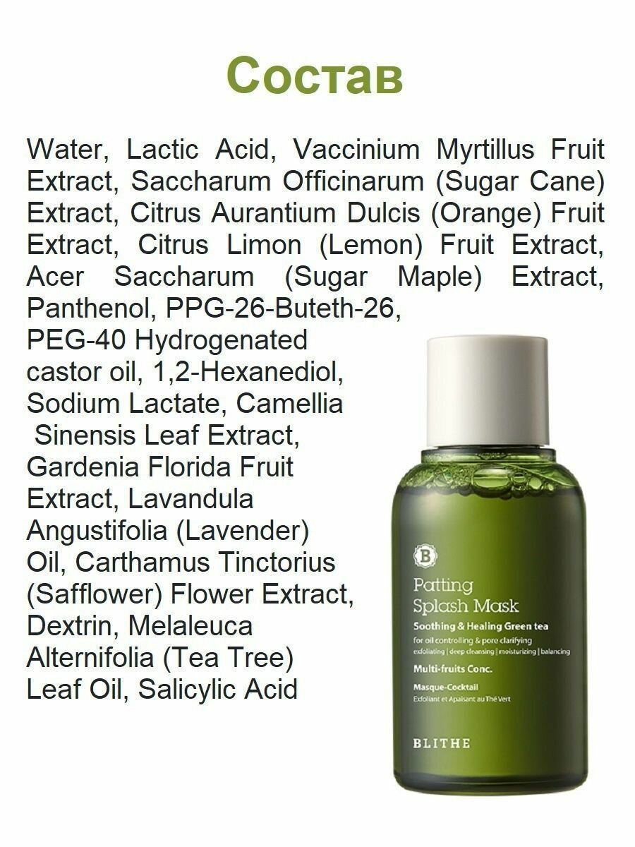 (Проверенный) BLITHE Patting Splash Mask Soothing & Healing Green Tea Восстанавливающая сплэш-маска 150 мл