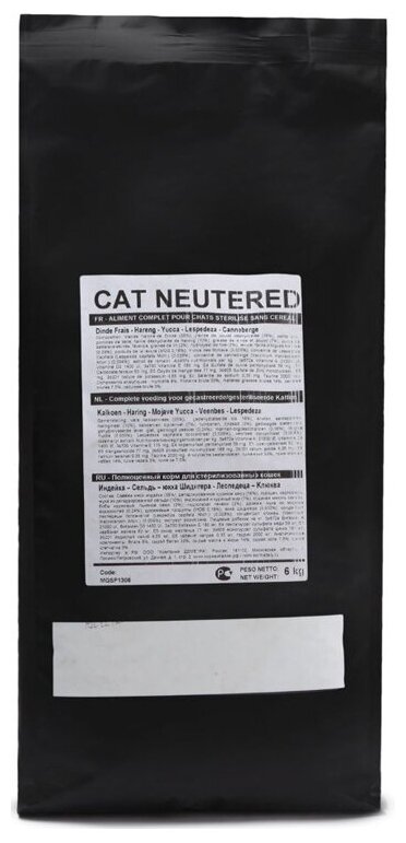 Корм сухой PRIMORDIAL NEUTERED для стерилизованных кошек беззерновой индейка сельдь, 6 кг